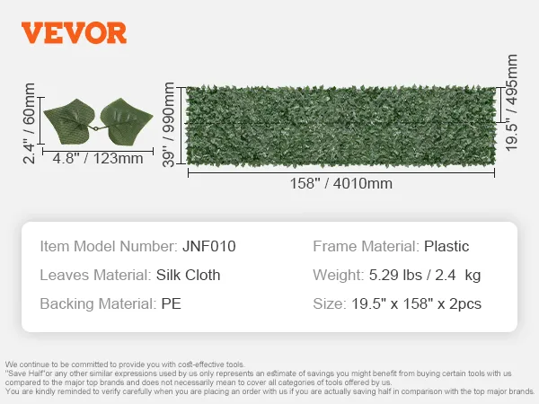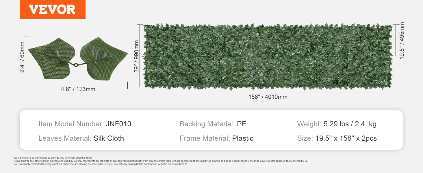 100% Blockage: The leaves are positioned closely together, forming a natural barrier that blocks intense sunlight and unwanted views. Despite their density, the faux ivy screen still allow for airflow through the mesh back. The reinforced connections ensure the leaves remain securely attached to the panels, preventing them from being blown away by harsh conditions.