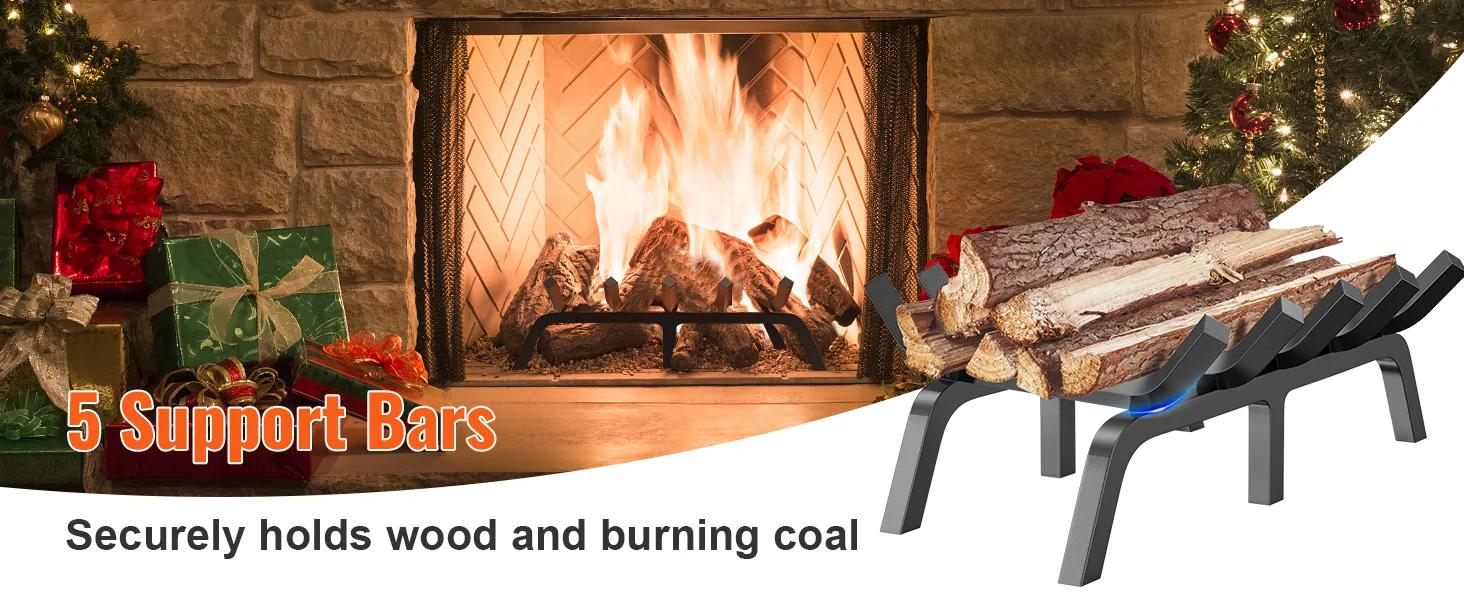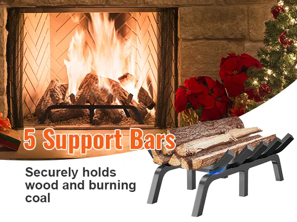 Longer Burn Times: The fireplace rack includes 5 steel bars with appropriately sized gaps to accommodate various sizes of firewood, providing a longer-lasting fire. The curved design ensures that the firewood remains in a safe place, preventing the logs from rolling or moving during burning.