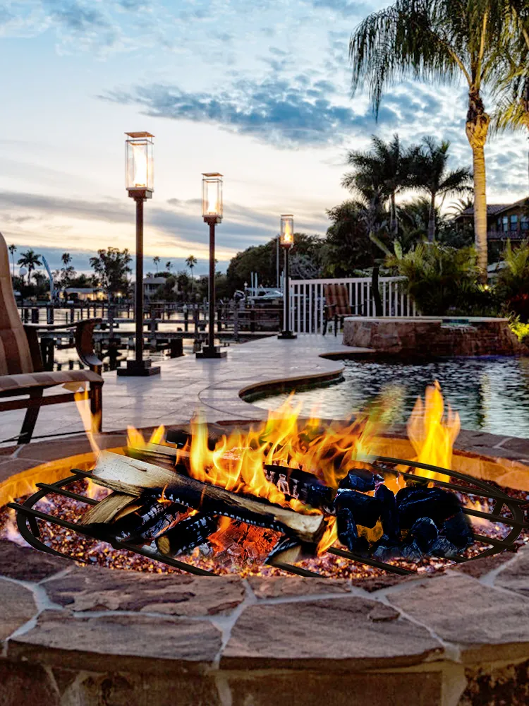 The circle fire pit grate allows the wood to burn 4.1 inches from the ground. This grate can improve the airflow, resulting in a better, longer-lasting flame.