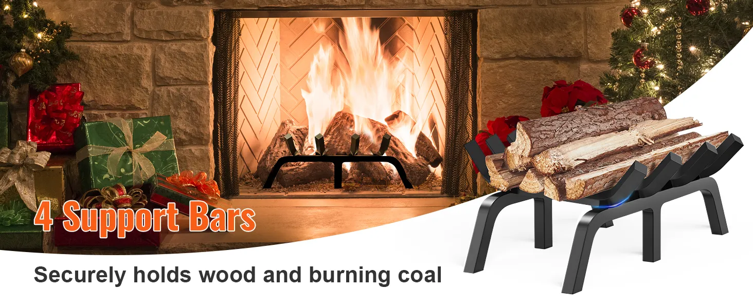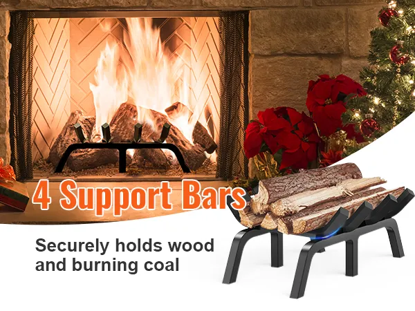 This fireplace log grate has a long-lasting burn time. It features 4 steel bars with gaps to hold various sizes of firewood. The curved design keeps the firewood in one place. This prevents logs from rolling or moving during burning. By maintaining an optimal position for the firewood, the grate helps extend its burn duration, which means that you can enjoy a warm and cozy atmosphere for longer periods. Also reduces the need for frequent refueling, making it more convenient to use.