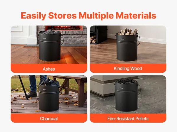 This fireplace ash bucket has broad usability, fitting various scenarios including home fireplaces, wood-burning stoves for heating, outdoor fire pit gatherings, and camping fire-starting. It effectively meets diverse usage needs.