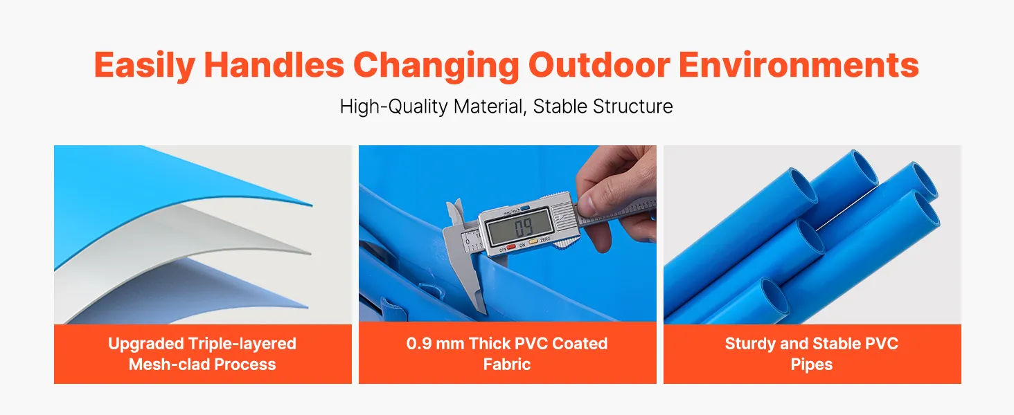 Sturdy Structure: The above-ground fish pond features sturdy and stable PVC pipes that are corrosion-resistant. Its strong, stable frame ensures that it remains intact and holds its shape, even when full of water, ensuring long-term durability.