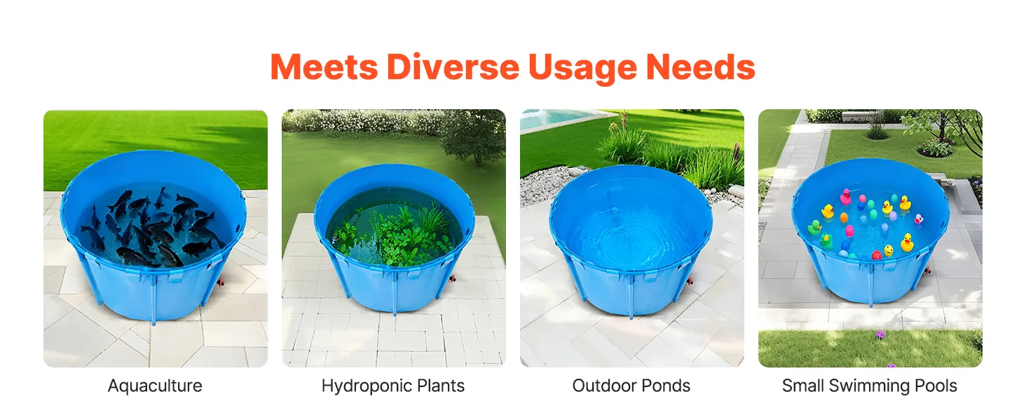 Wide Application: Designed to accommodate a variety of aquatic species, this pond is ideal for koi, goldfish, shrimp, crabs, and more, meeting the needs of diverse aquaculture environments.