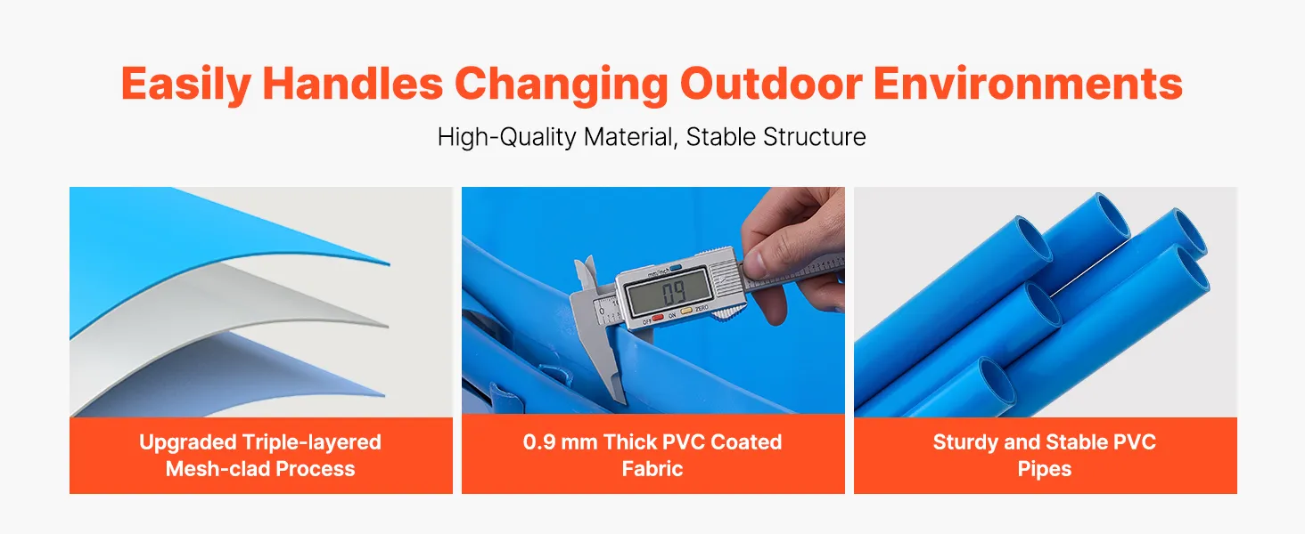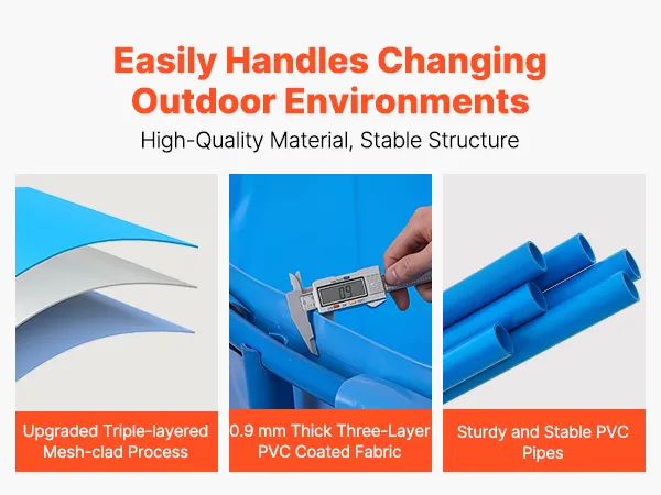Sturdy Structure: The above-ground fish pond features sturdy and stable PVC pipes that are corrosion-resistant. Its strong, stable frame ensures that it remains intact and holds its shape, even when full of water, ensuring long-term durability.