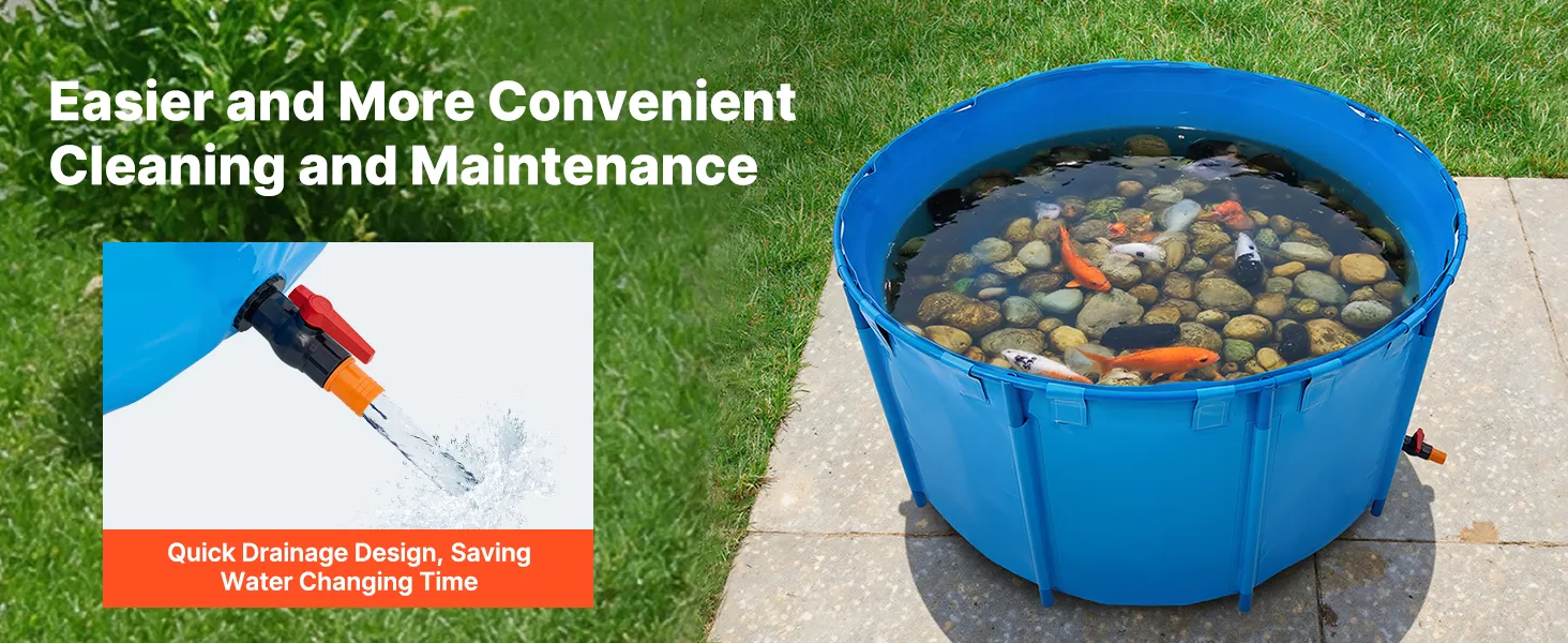 Quick Drainage: With a large drainage valve, this fish pond allows quick water release with a simple turn, saving time and making maintenance more convenient.