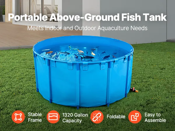 This pond, made of thickened PVC fabric, is wear-resistant with leak-proof stitching. Durable PVC pipes ensure long-lasting use. Its 1320-gallon capacity provides ample space for aquatic life like koi, goldfish, shrimp, and crabs, ideal for indoor and outdoor use.