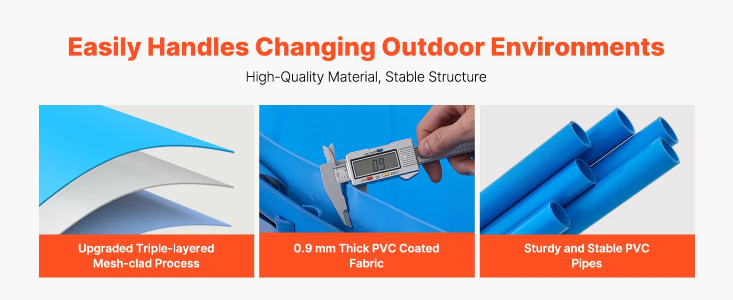 Sturdy Structure: The above-ground fish pond features sturdy and stable PVC pipes that are corrosion-resistant. Its strong, stable frame ensures that it remains intact and holds its shape, even when full of water, ensuring long-term durability.