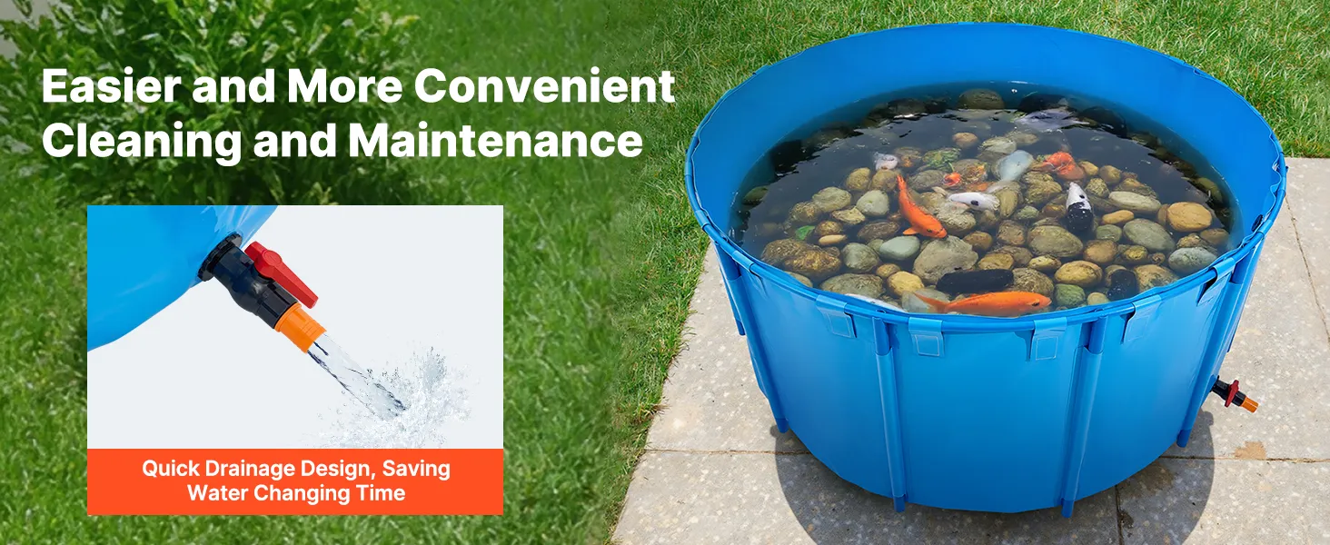 Quick Drainage: With a large drainage valve, this fish pond allows quick water release with a simple turn, saving time and making maintenance more convenient.