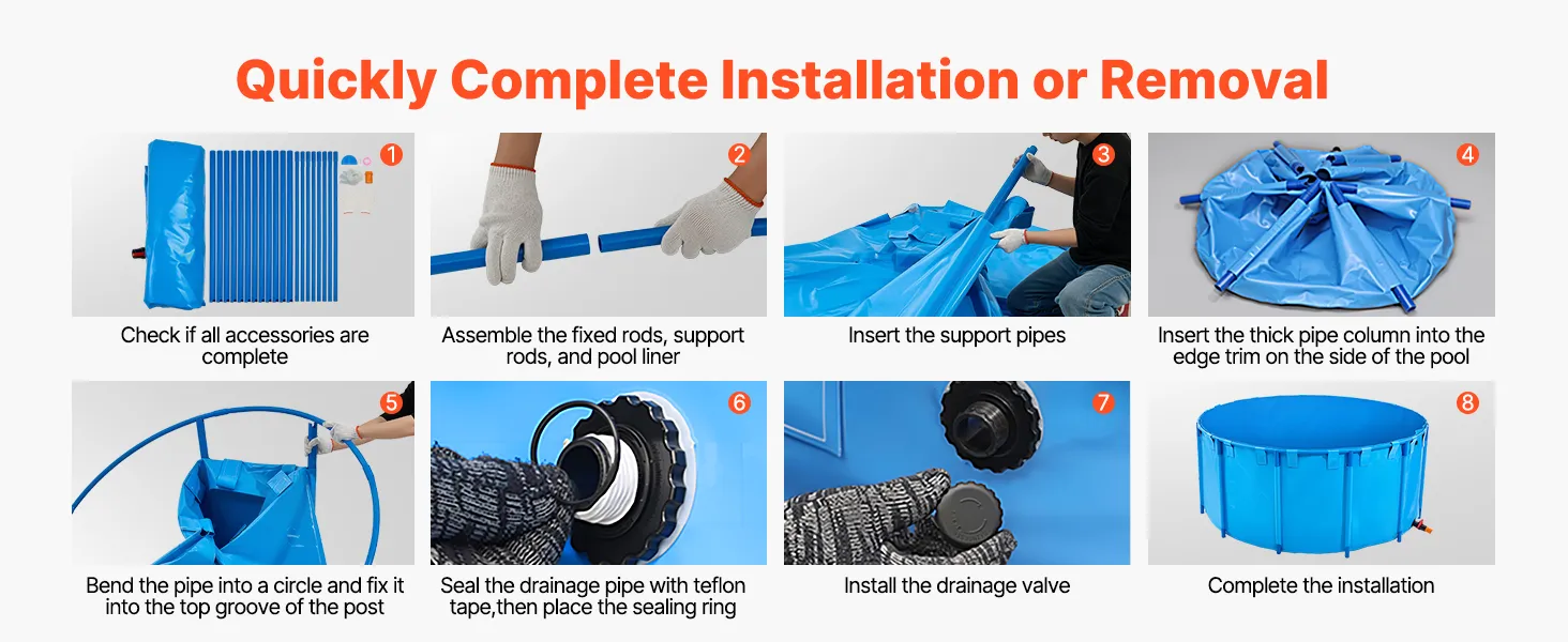 Our above-ground fish pond requires no additional tools for quick installation or removal. The entire process is simple, efficient, and time-saving, making it very convenient to use.