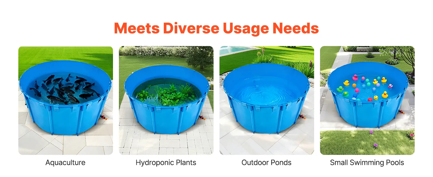 This PVC fish pond is suitable for aquaculture, outdoor ponds, and small swimming pools, easily meeting your diverse needs. It adapts to various scenarios, providing efficient and convenient solutions.