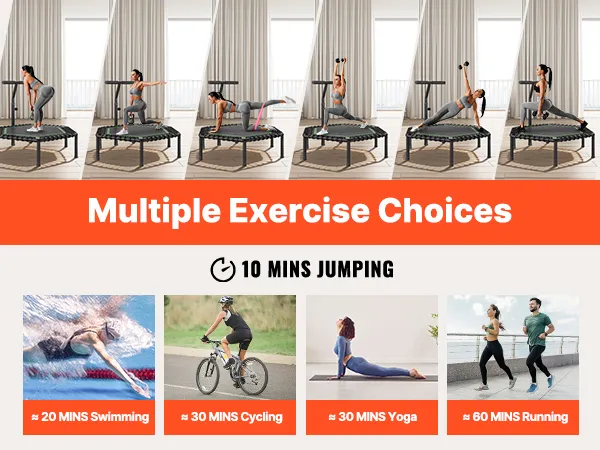 Effortless Installation: Get bouncing in no time! The fitness trampoline comes partially pre-assembled, and with the included labor-saving tool, you can have it fully set up and ready for use in just 10 minutes