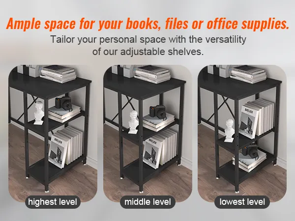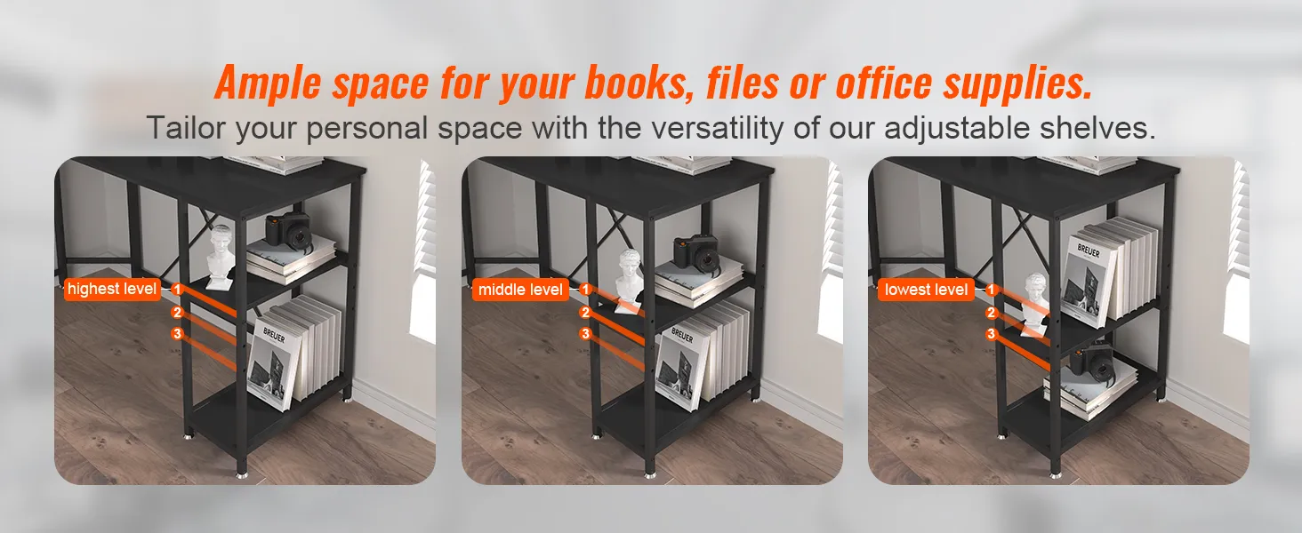 Adjust to Fit Your Space: Our office desk's shelf offers three adjustable heights, allowing you to customize your workspace to fit your unique needs. Keep your books and files at arm's reach, or organize your stationery and electronics within easy sight. Upgrade your workspace with our versatile and functional desk today.