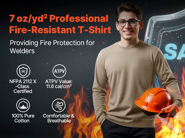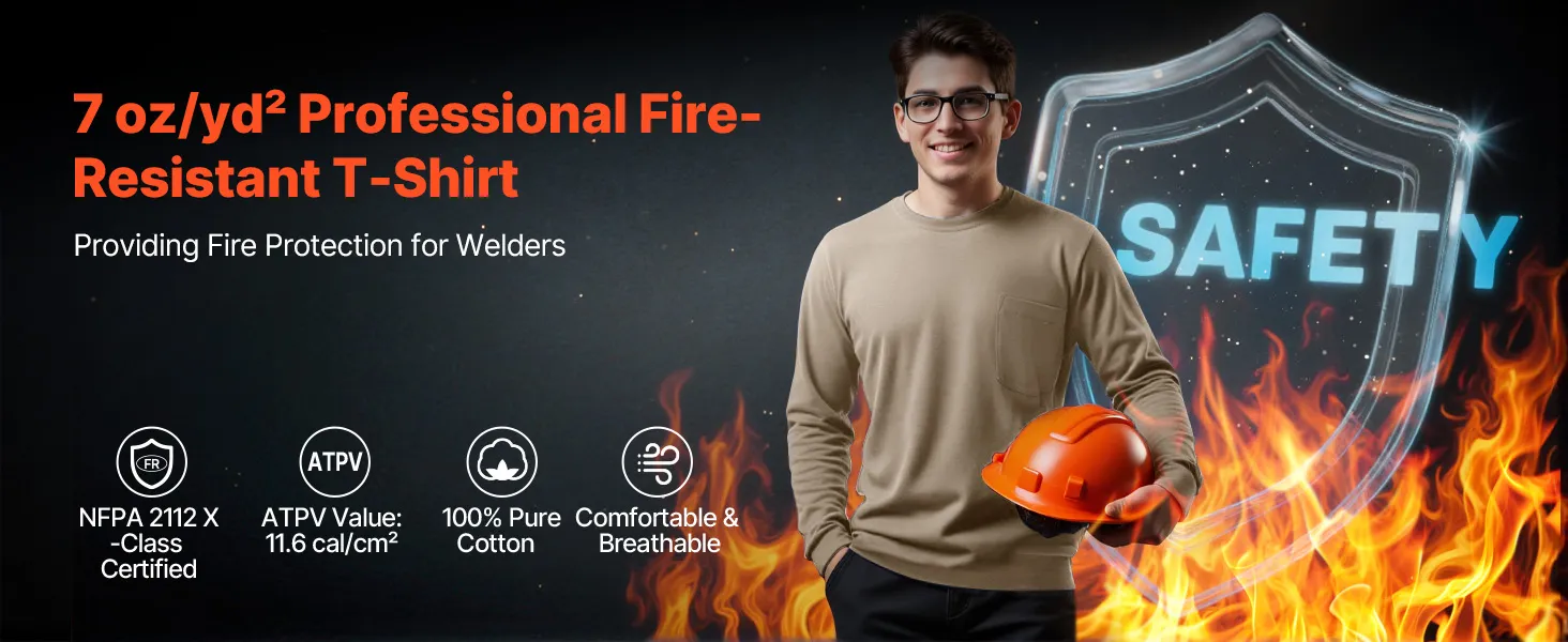 This T-shirt is made of 7 oz/yd² pure cotton and offers outstanding flame resistance with an ATPV rating of 11.6 cal/cm², ensuring safety in extreme conditions. Ideal for high-risk environments such as metal workshops, construction sites, industrial facilities, and power distribution rooms.