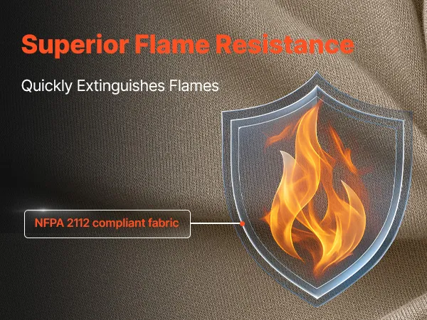 Professional FR Work Shirt: This FR work shirt meets NFPA 2112 standards with an ATPV rating of 11.6 cal/cm². It self-extinguishes after fire exposure and emits no harmful gases, reducing burn risks in extreme conditions
