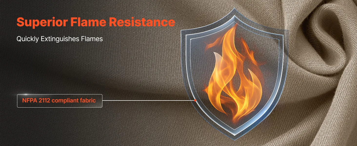 The flame-resistant fabric slows down ignition and self-extinguishes once away from the fire source. It helps avoid flame spread, significantly reducing the risk of burns from sparks, arcs, and high-heat exposure.