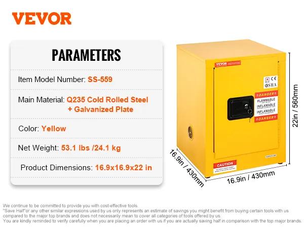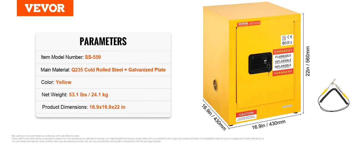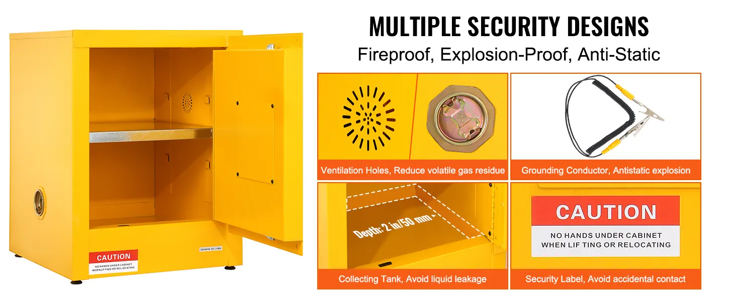 The VEVOR flammable cabinet offers exceptional value for money. It provides the same level of quality and safety as more expensive options but at a much more affordable price. This makes it an excellent choice for businesses and individuals looking to store flammable materials safely without breaking the bank. Although its lower cost does not compromise on quality or safety features, it still meets stringent requirements for soluble storage, ensuring compliance and peace of mind.