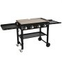 This griddle comes with side shelves. They provide extra prep space. You can use them to store ingredients or utensils. The shelves are sturdy and reliable. They can hold a good amount of weight. This makes cooking easier and more efficient. You have everything you need within reach. These shelves make it more than just a preparation tool. It becomes irreplaceable. You can prepare, cook, and store all in one place. This griddle is perfect for those who need extra preparation space because it's practical and convenient.
