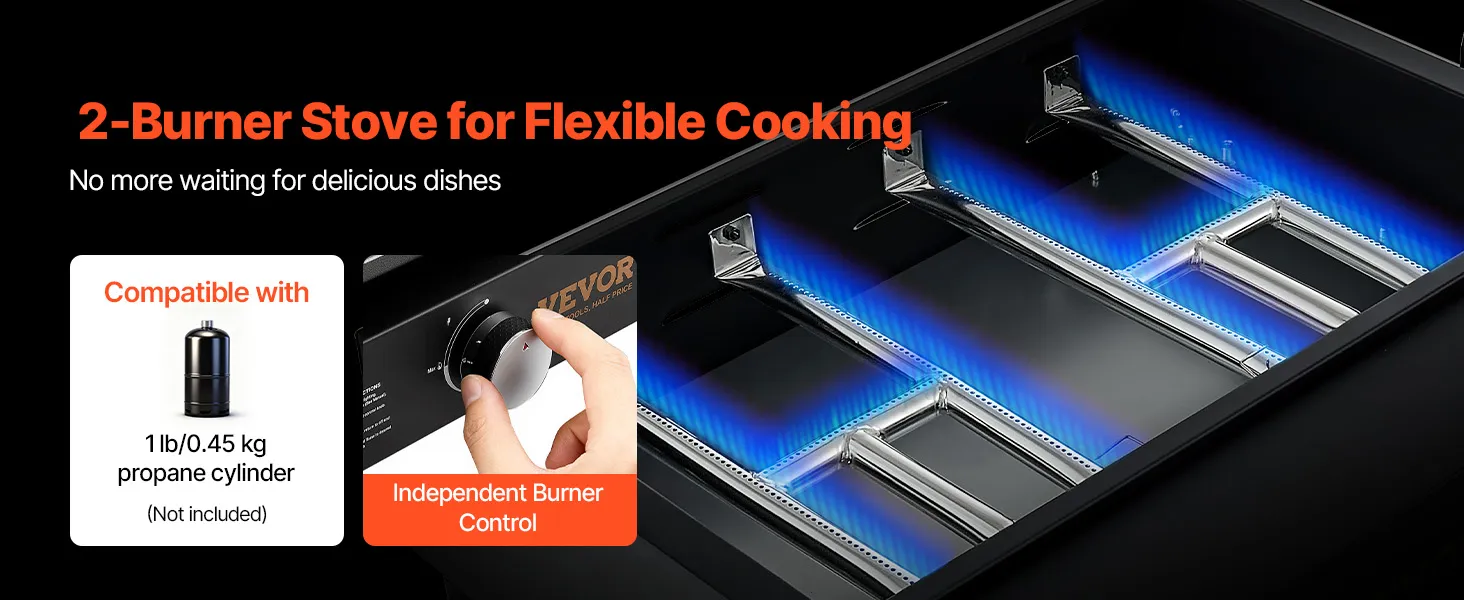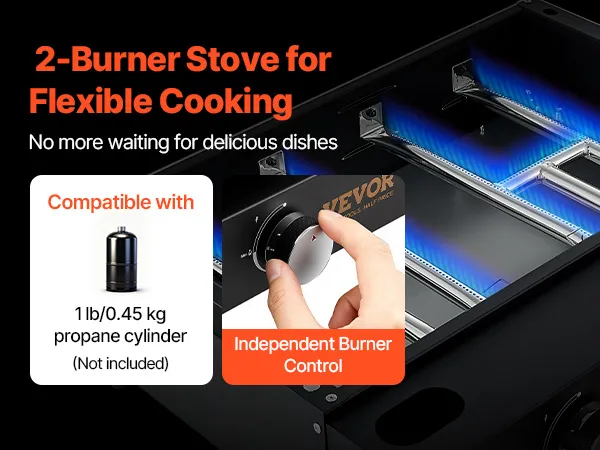 The VEVOR steel LPG gas griddle heats up quickly, saving you valuable time. The H-shaped burner ensures even heat distribution. This results in uniformly cooked food every time! The steel construction provides a durable cooking surface. It can withstand regular use without any issues. Fast heating is ideal for quick meals and can suit fast-paced cooking environments like restaurants. The efficiency of this griddle helps maintain food quality. A reliable performance makes it the best choice for any cook.