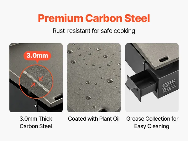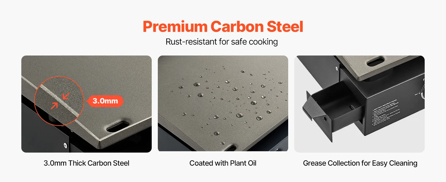 Cleanup is easier than ever. This VEVOR griddle has a non-stick cooking plate. Food doesn't stick to the surface, making cleanup more enjoyable so you can spend more time enjoying your meal and less time cleaning. Even sticky foods are easy to manage on this griddle. A quick wipe-down is often all it takes to clean up. The non-stick surface also improves cooking efficiency. This makes it an attractive feature for busy cooks. No matter if you're a newbie or an experienced cook. You can enjoy hassle-free cooking thanks to this easy-to-clean griddle!