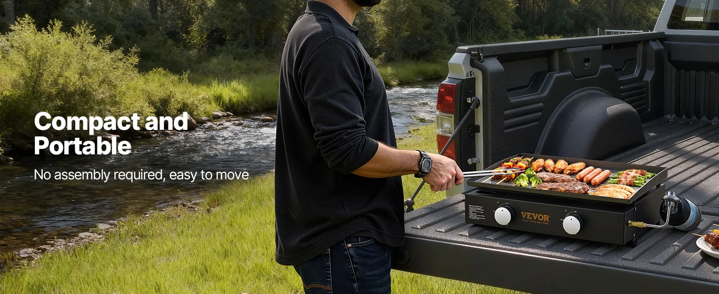 What is the best part of this VEVOR commercial griddle for all your outdoor adventures? It’s hard to pick just one! It doesn’t matter if you're camping or on a float trip with friends. This griddle is perfect because it has a compact design. Its compact design makes it easy to carry. You can cook everything from bacon and eggs to fajitas and pancakes. It is made to meet all your outdoor cooking needs. The durable materials ensure it stands up to the rigors of travel. Additionally, it is strong enough to last for years. It's a great addition to any camping gear. The even heat distribution gives optimal results every time. Your portable griddle offers an enjoyable and hassle-free experience.