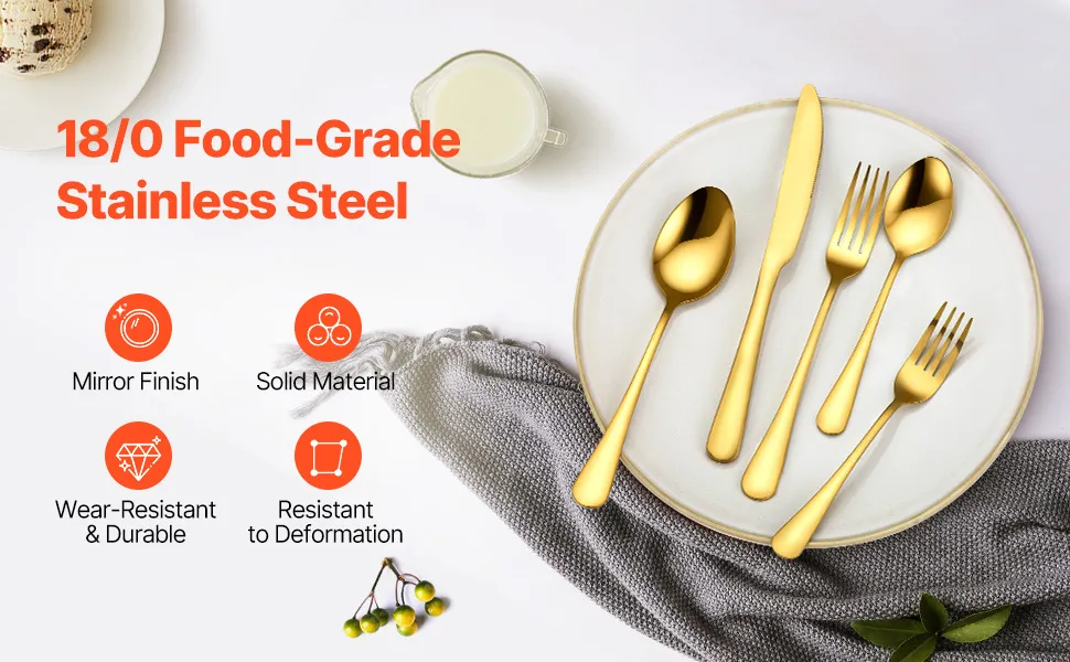 High-Quality Stainless Steel: Made from premium 18/0 stainless steel, this tableware cutlery set is durable, corrosion-resistant, and rust-proof with excellent balance. The smooth-edged design ensures comfort during use. Dishwasher safe and perfectly weighted, it is designed for long-lasting use
