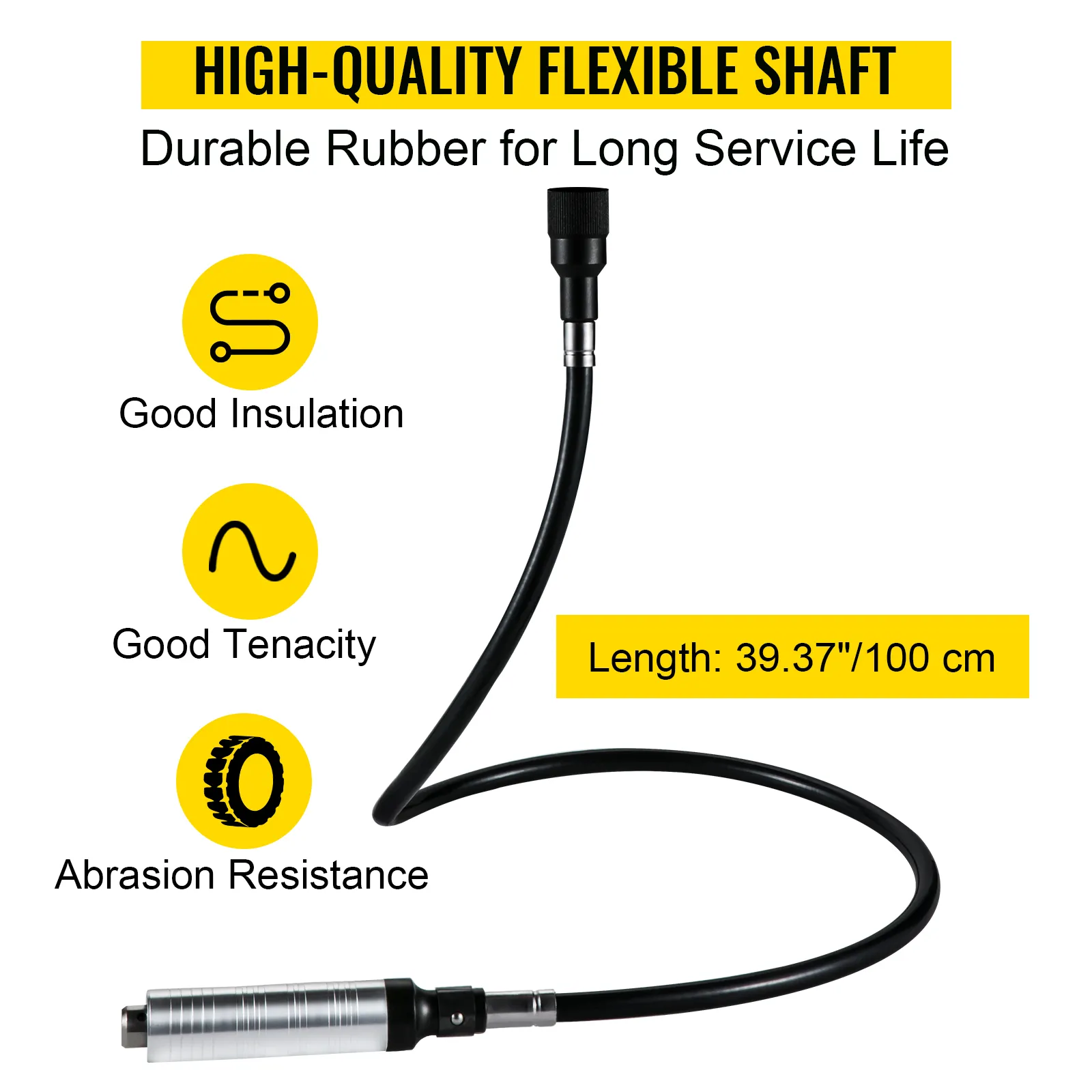 The flexible shaft is constructed of high-quality rubber, featuring high strength, abrasion resistance, and tenacity. Besides, its hanging design makes this tool easy to maneuver in your backyard, garage, or workshop.