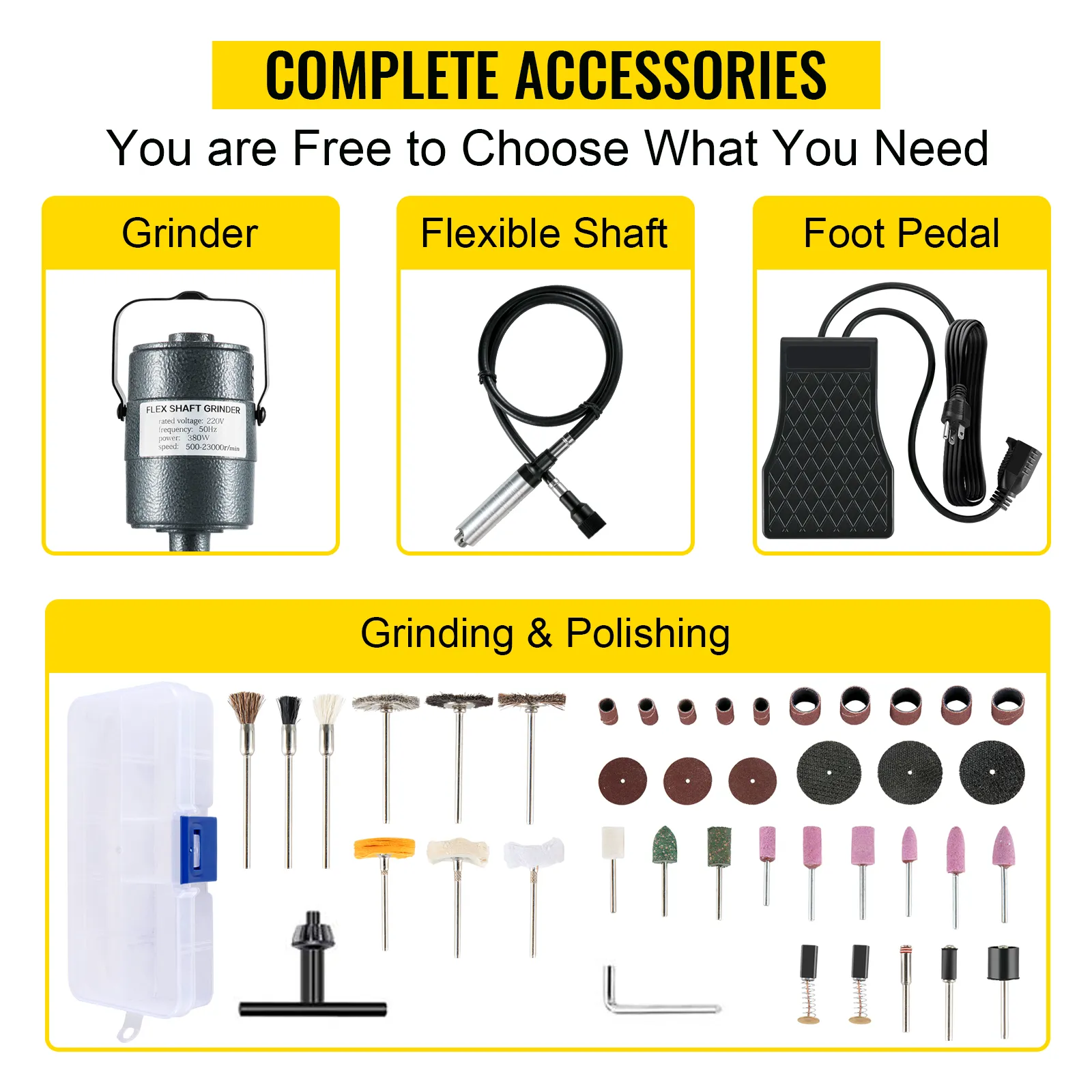 - 1 x 380W Flex Shaft Grinder
