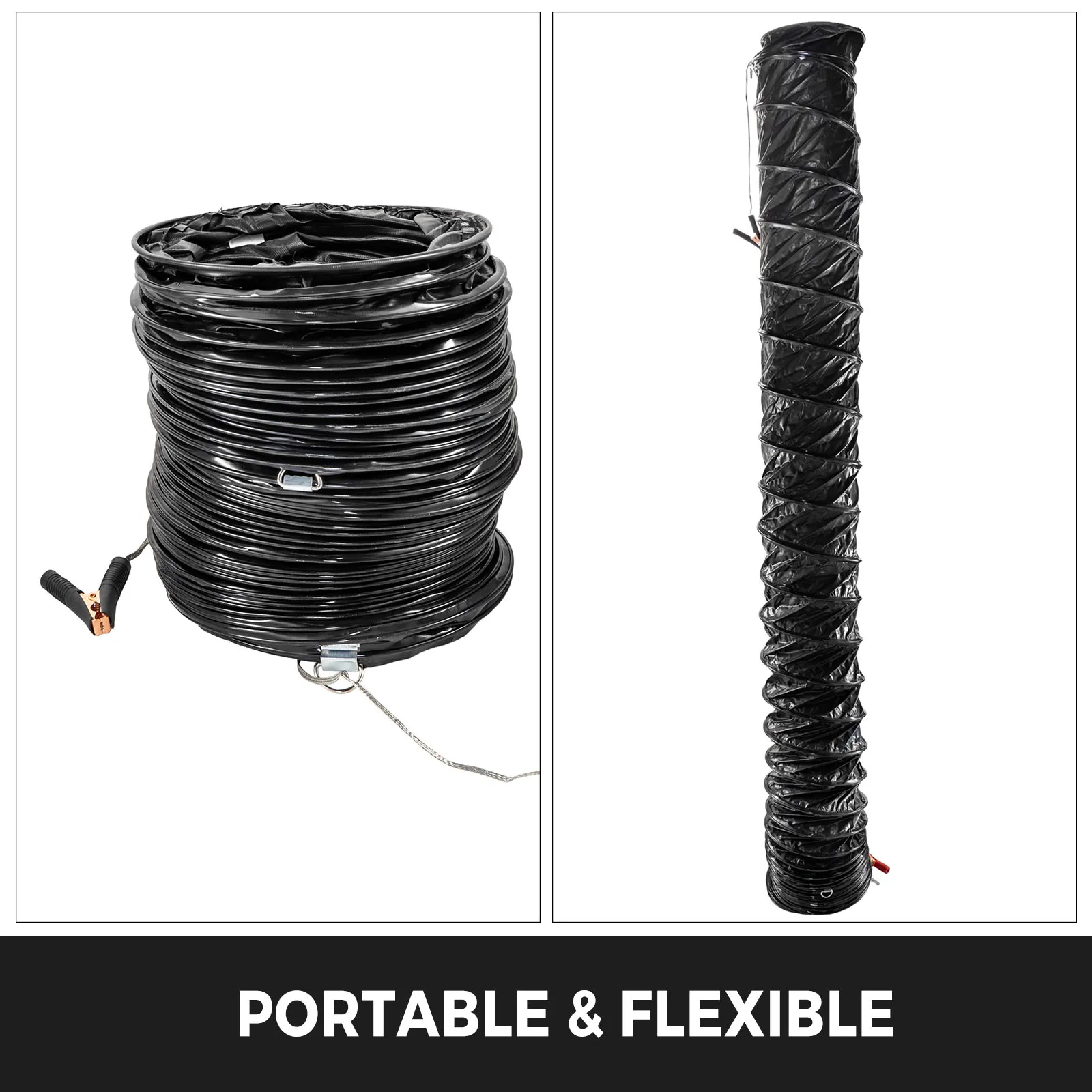 Our brand new 18" Diameter Fan Ducting is designed to be flexible and portable, made with reinforced polyvinyl that is flame retardant. Ducts include quick-connect Nylon Ropes for easy blower attachment, electrostatic clips for better static-free operation.