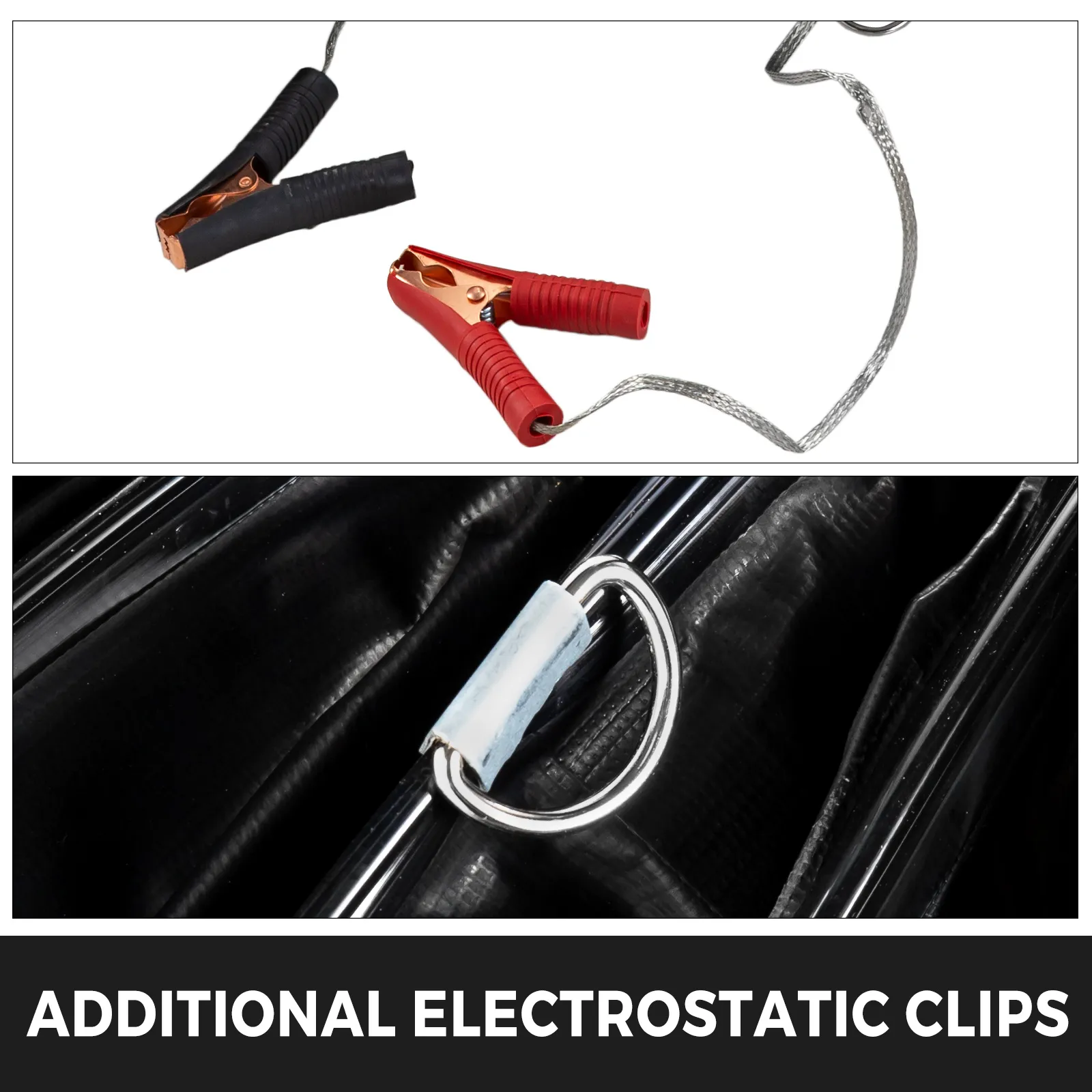 2 electrostatic clips are available for your better static-free operation, and stainless steel D-shaped rings for your easy duct-hanging.