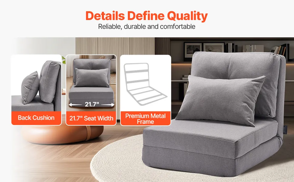 This folding sofa bed chair combines several thoughtfully designed features, such as a high-quality steel frame and a spacious seat width, creating a sitting and reclining experience that is both stylish and functional.
