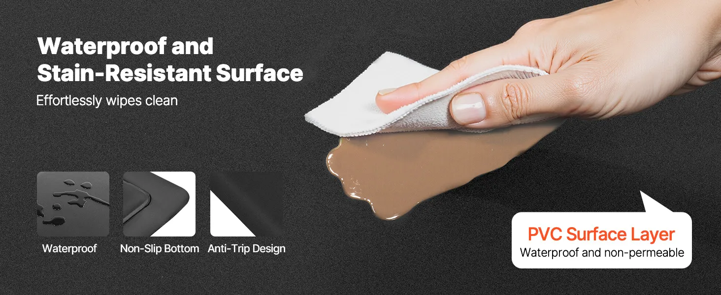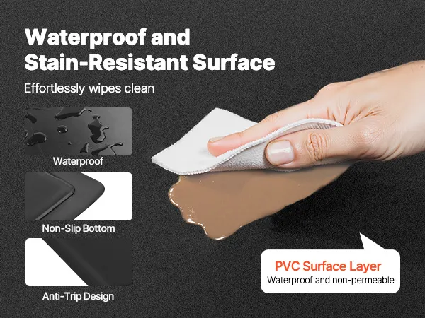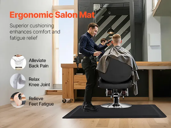 VEVOR 1525 x 910 mm salon mat is designed to provide superior comfort and fatigue relief, alleviating back pain, relaxing knee joints, and relieving foot fatigue, enhancing your overall work comfort and efficiency. It is puncture & curl-resistant, anti-trip, durable, and easy to clean.
