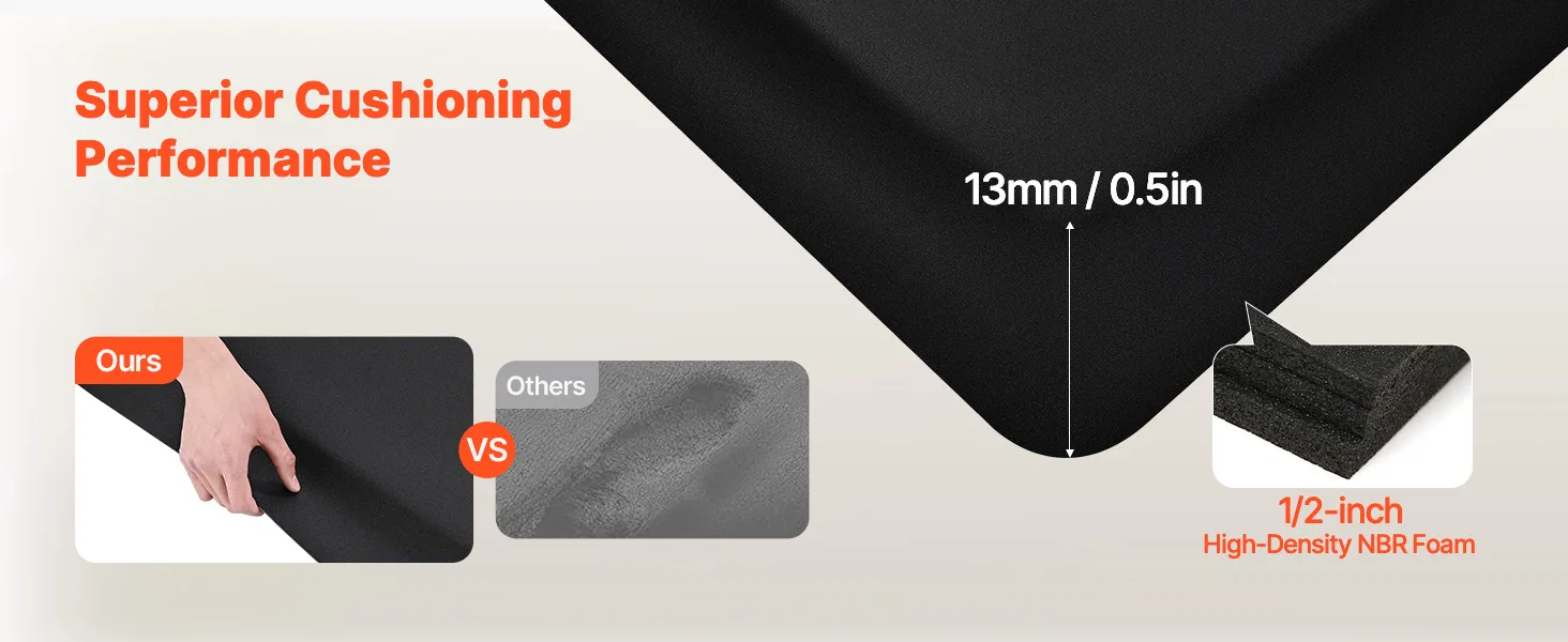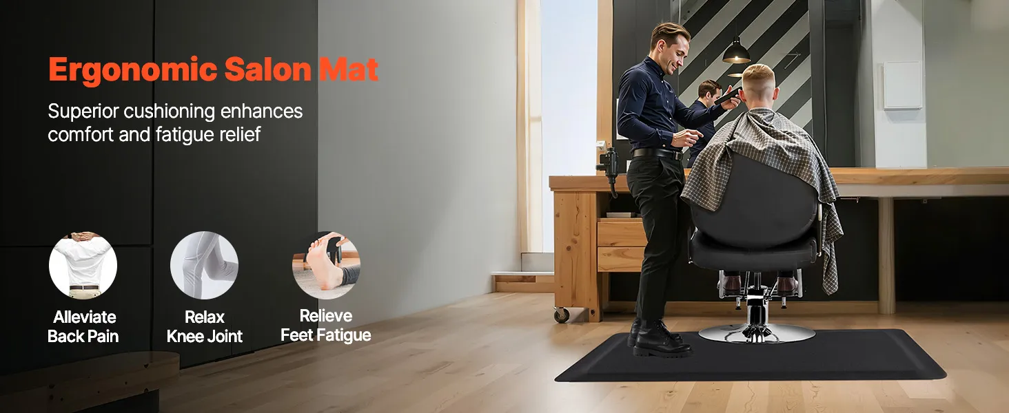 Superior Comfort: Filled with 13mm thick, high-density NBR foam, this anti-fatigue salon chair mat offers premium cushioning and shock absorption, reducing fatigue, pressure, strain on your feet, legs, knees, and back from long hours of standing