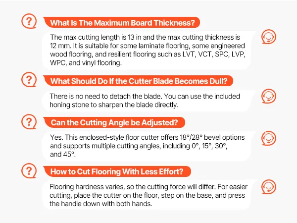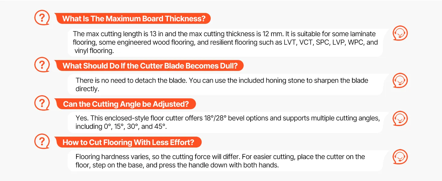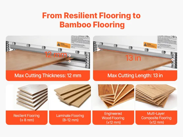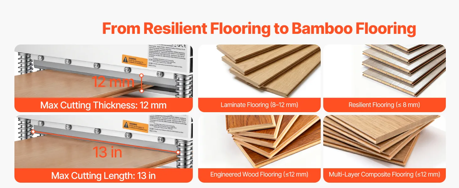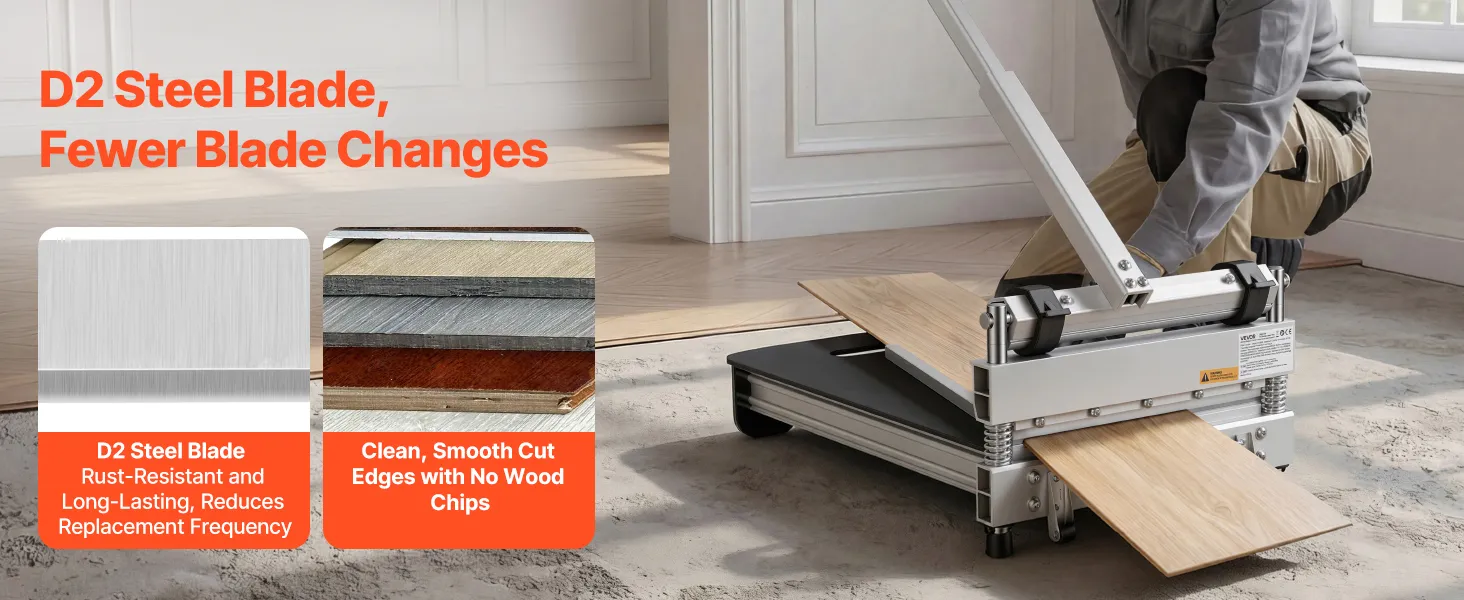 Multi-Floor Compatibility: As a laminate floor cutter, it cuts resilient flooring (PVC, LVT, VCT), laminate flooring, engineered hardwood, and multi-layer composite flooring. Meets your flooring renovation needs in different spaces