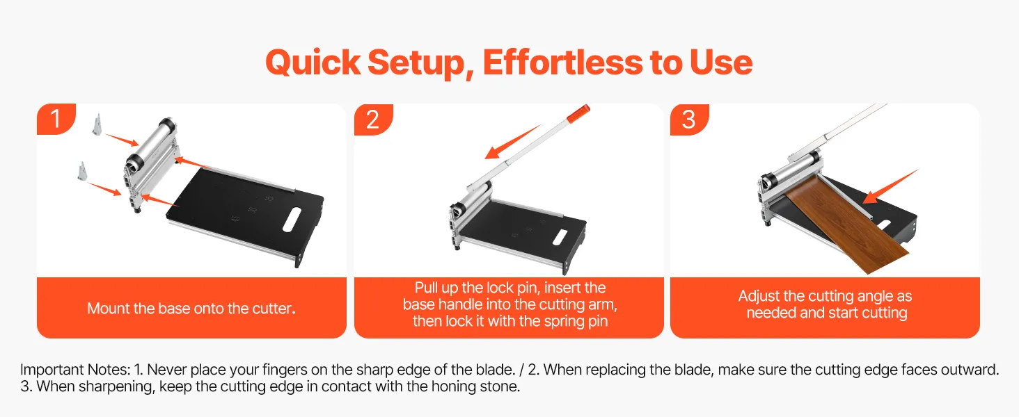 Smooth & Clean Cutting: This lvp cutter uses a sharp D2 blade to deliver smooth, chip-reduced edges. Its rust-resistant design ensures long-lasting performance, and with the included honing stone, you can detach the blade and sharpen it whenever needed