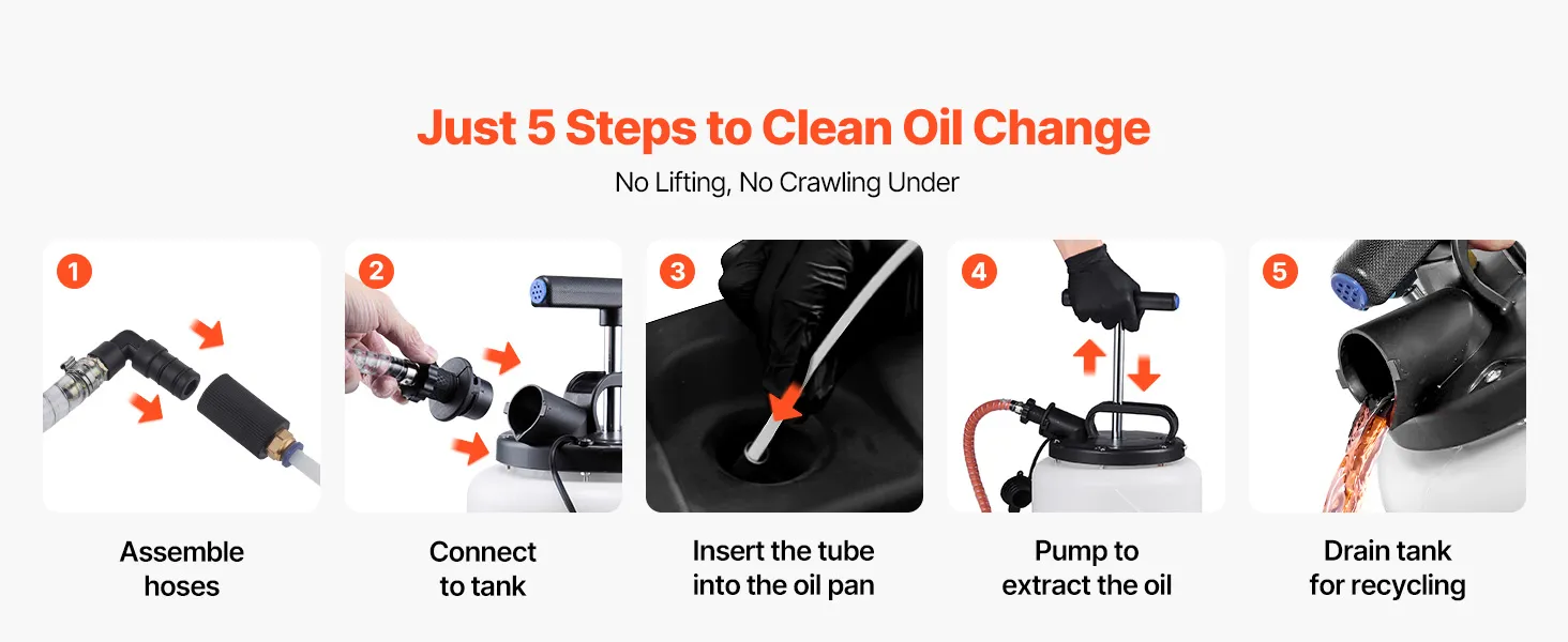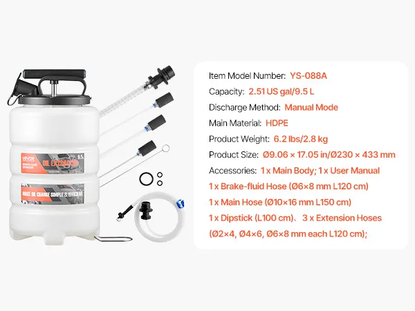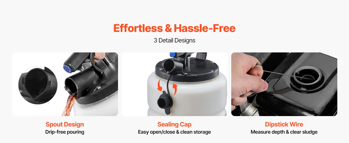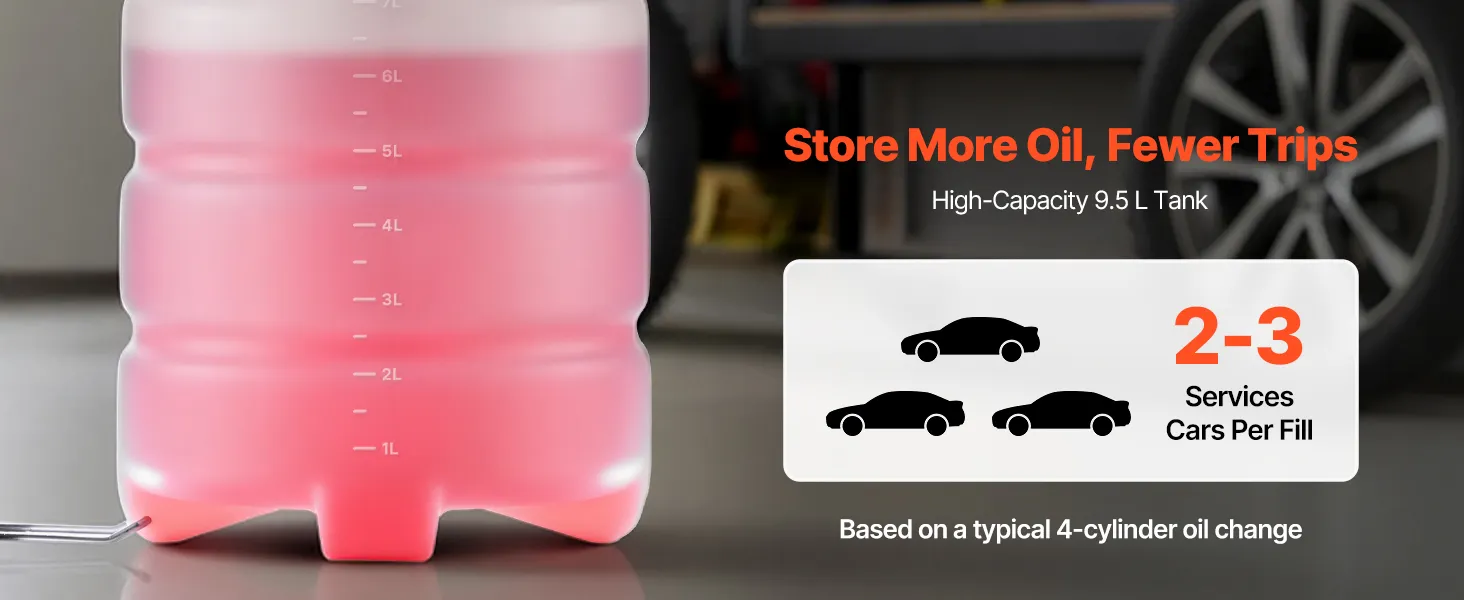 9.5 L Durable Tank: This semi-transparent HDPE reservoir of the dipstick oil extractor resists corrosion and aging. You monitor levels at a glance, run longer between empties, and tackle frequent use with confidence
