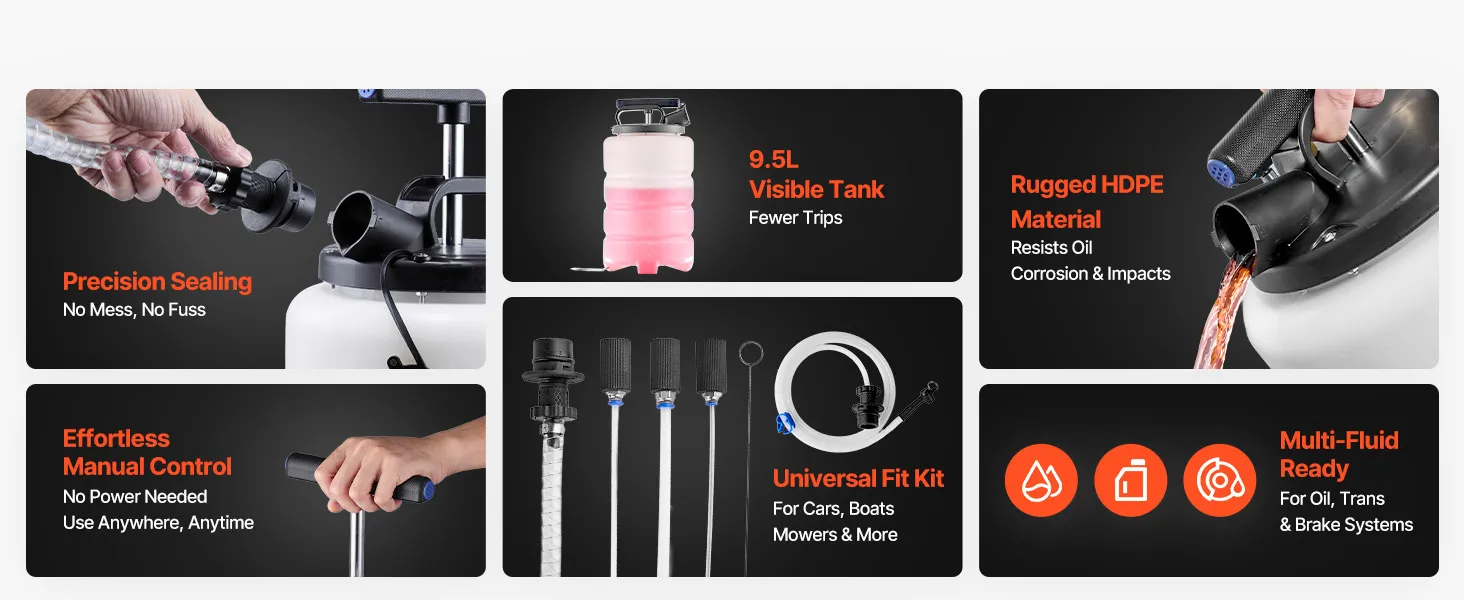 High-Efficiency Manual Suction: This hand vacuum fluid extractor needs no power or air line, so you pull fluids fast in garages, driveways, or roadside spots—less waiting, more doing, and smoother maintenance