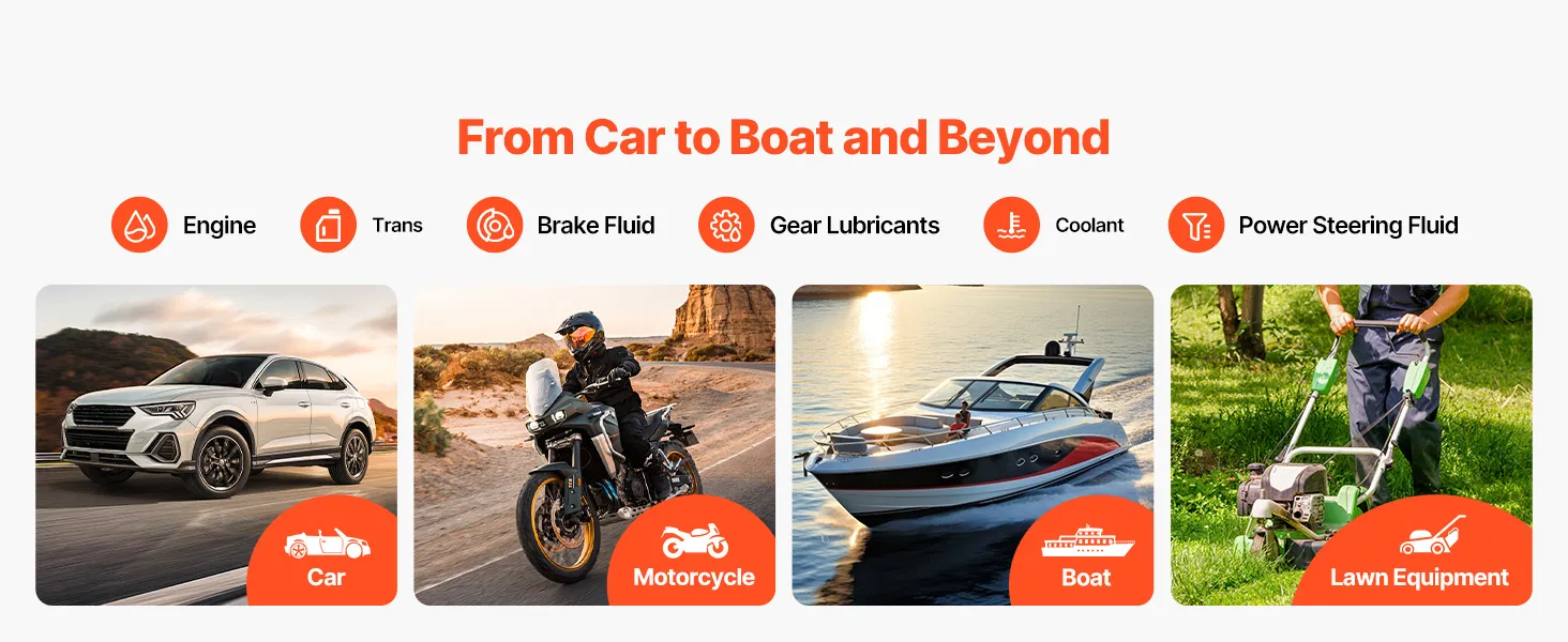 Wide Compatibility: This vacuum fluid extractor handles engine oil, coolant, brake fluid, and transmission fluid. You service cars, trucks, motorcycles, boats, and lawn equipment with one handy tool