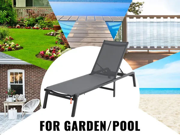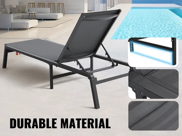 This chaise lounge chair is made to last for a long time. It's made with an incredibly heavy-duty aluminum alloy frame that supports up to 400 lbs and resists rust, ensuring durability. The premium sterling fabric is breathable and water resistant, maintaining its quality throughout all seasons. This fabric, resistant to deformation and wear, offers unparalleled comfort and support, perfecting your relaxation with your loved ones.