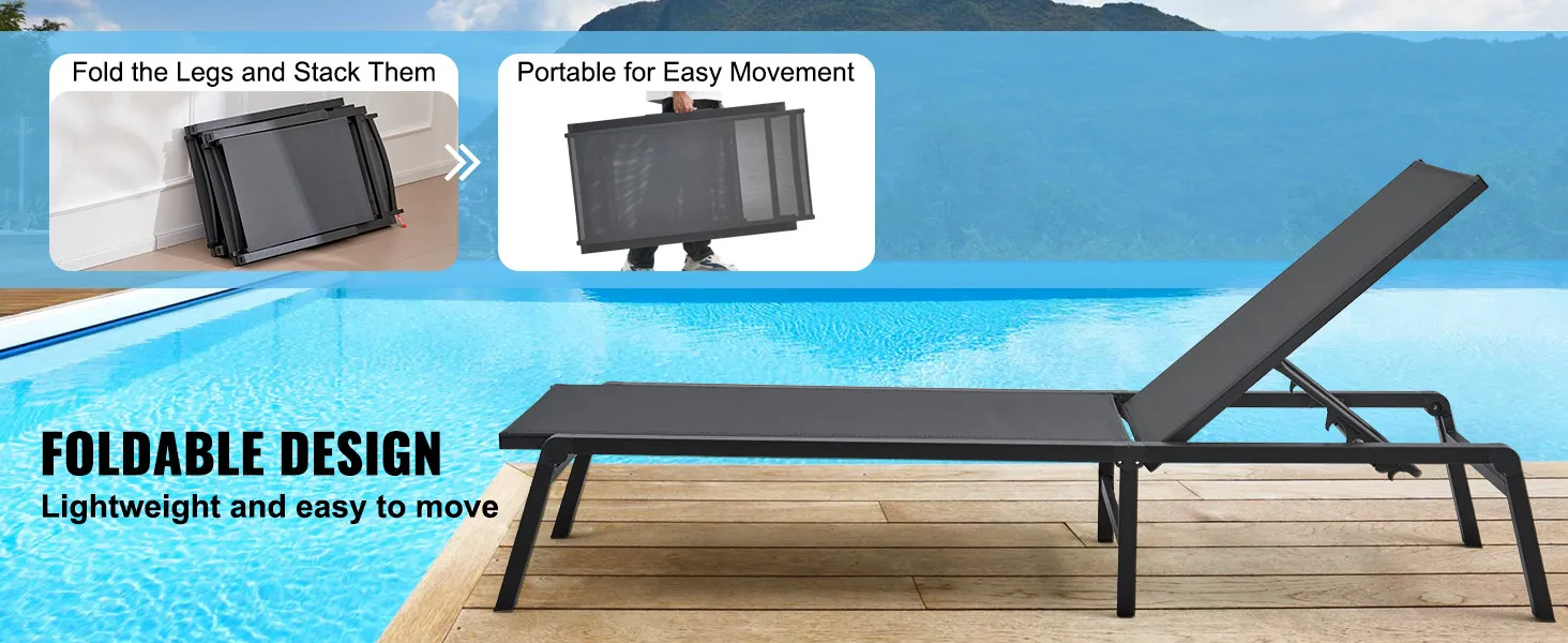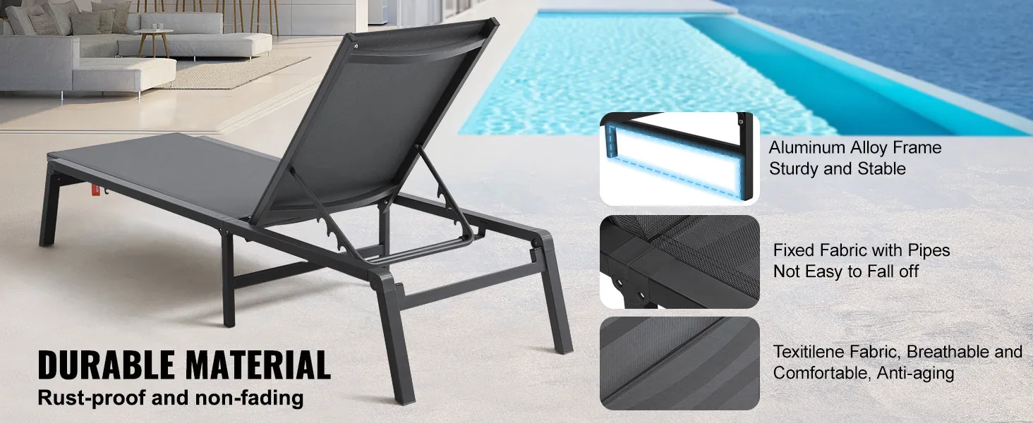 The VEVOR chaise lounge chair is so easy to maintain. Its aluminum frame requires minimal maintenance, while the sterling fabric is easy to clean with a simple wipe. With its quick-drying property, your chair is ready to use in no time, even after unexpected weather conditions.
