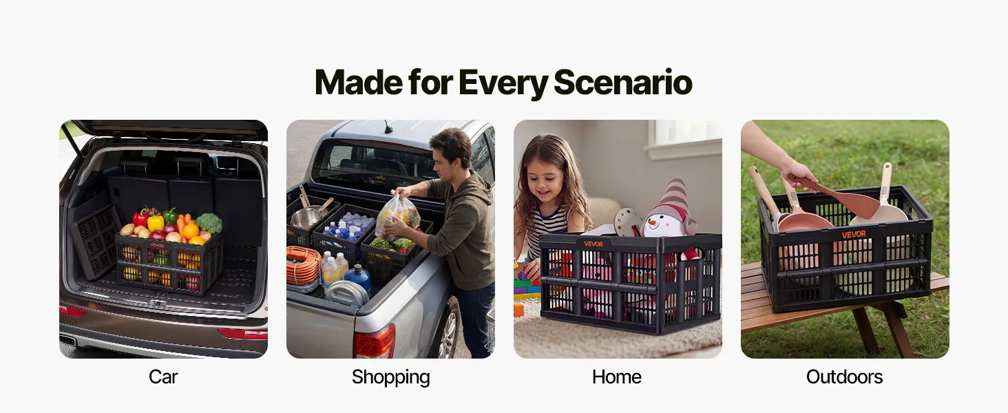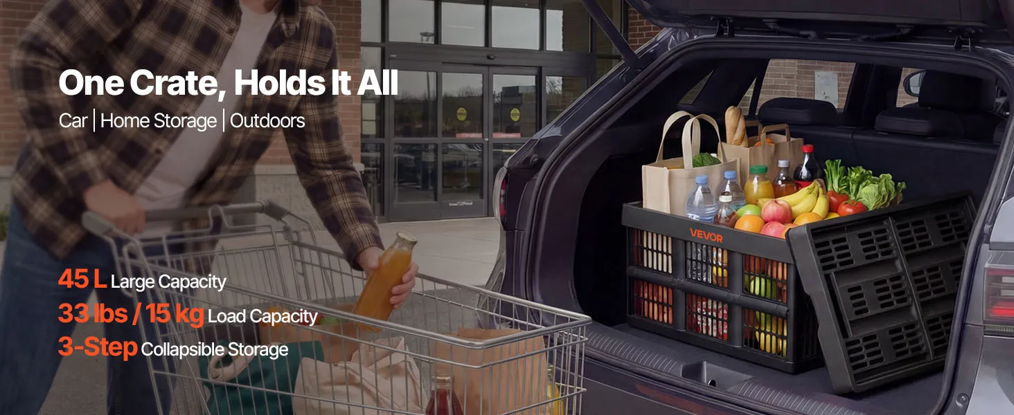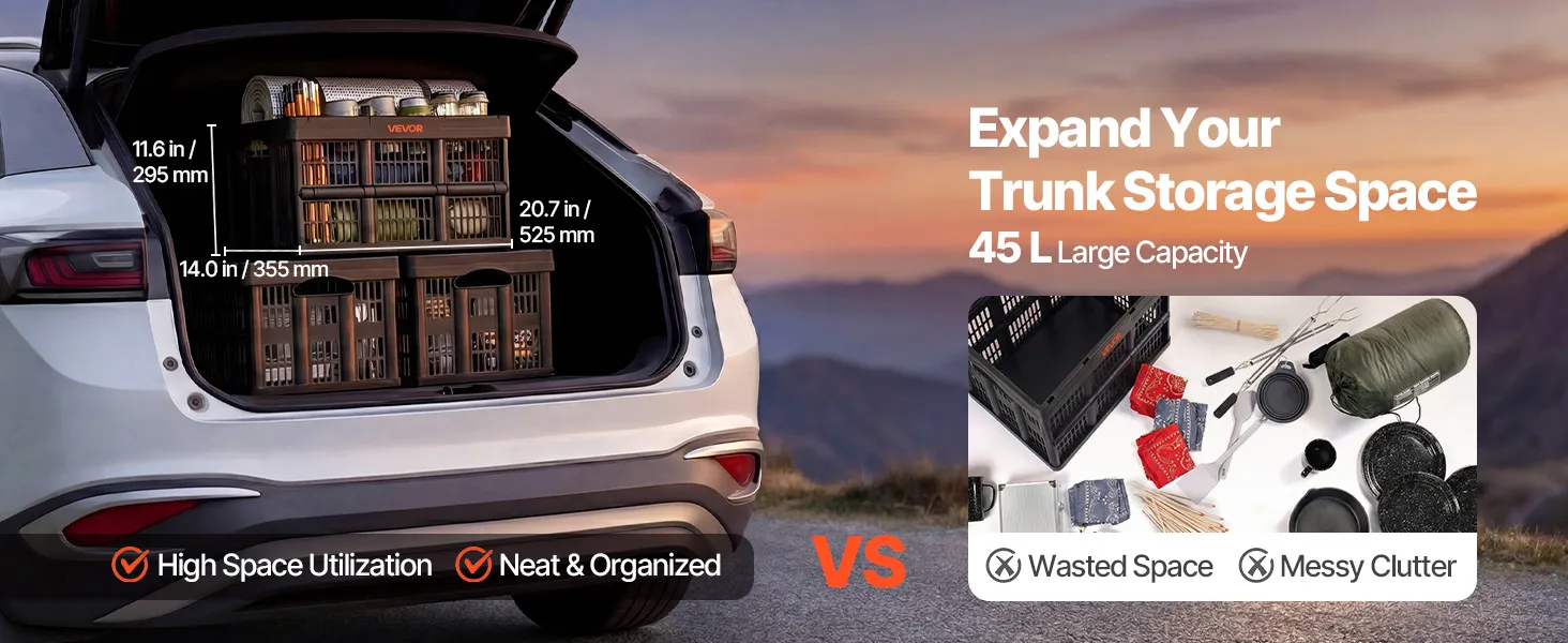 45L Extra-Large Capacity: Holds shopping, camping gear, and everyday household items with ease. These collapsible storage bins provide roomy, all-in-one organization so a single crate handles multiple storage needs