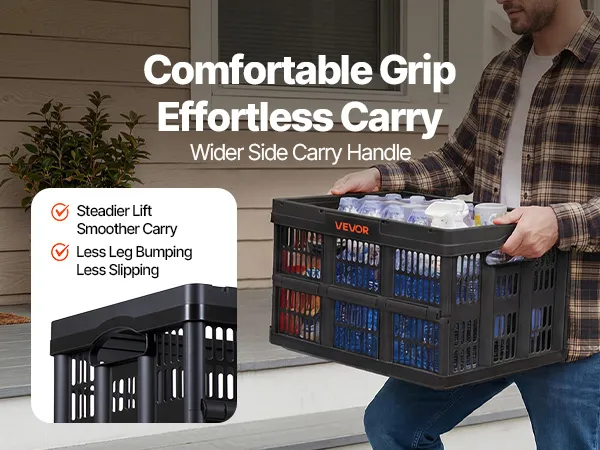 Comfortable Easy Carry: Ergonomic side handles distribute weight evenly for a secure grip. Even fully loaded, these folding storage bins lift easily and reduce carrying strain