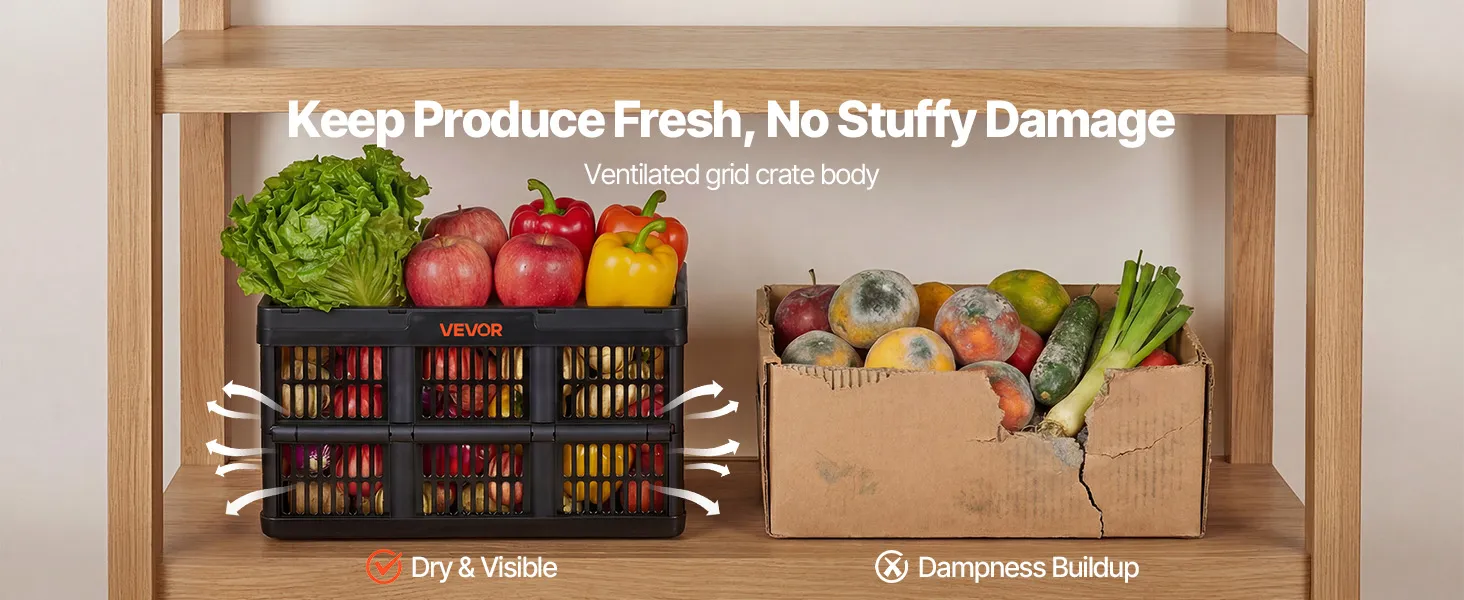 Stable Stackable Design: Each crate supports up to 33 lb / 15 kg with a reinforced structure for reliable stacking. These collapsible storage bins stay steady whether open for use or folded for storage