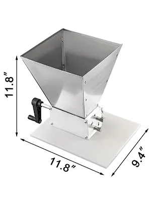 【ADJUSTABLE ROLLERS】- 3-roller design with special knurl can efficiently pull the grains through while minimizing damage to its shell to form an excellent filter bed for sparging. Adjustment range: 0.025~0.1". Roller size: φ 1.3" x 5".