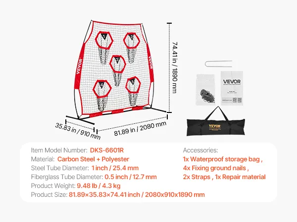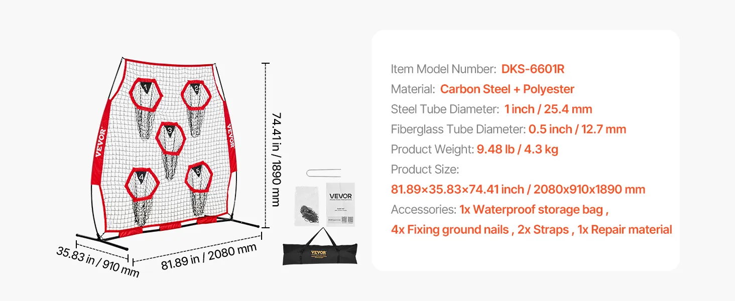 Extra-Large Receiving Area: The training throwing target practice comes with a super-sized throwing net measuring 6x6 feet and features five target pockets, ensuring you can throw the ball from various directions and distances. Whether it's practice or a game, this extra-large receiving area will help you catch the ball easily, improving your chances of success.