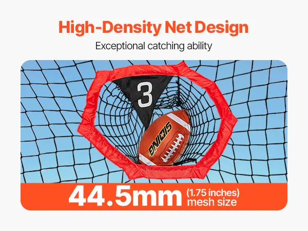 Featuring a high-density 1.75 inch/44.5mm mesh hole size design, this football throwing net ensures compatibility with passing drills.