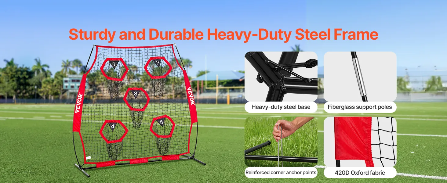 High-Density Mesh: The football throwing net employs a high-density 1.75 inch/44.5mm mesh size design, ideal for stopping footballs, ensuring compatibility with passing drills. At the same time, the high-quality materials ensure the durability of the mesh, effectively preventing damage, making your training more stable and long-lasting.