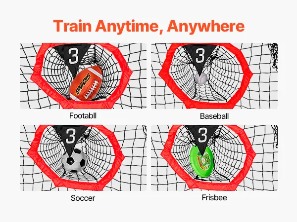 Sturdy and Durable: Our throwing net is made with knotless polyester netting, built to last. It can withstand harsh weather conditions, whether it's windy, rainy, or scorching hot. The reinforced base connection structure provides you with a durable and stable environment for football passing training.