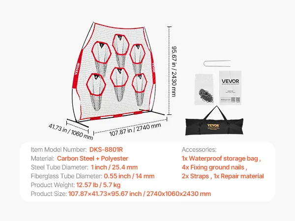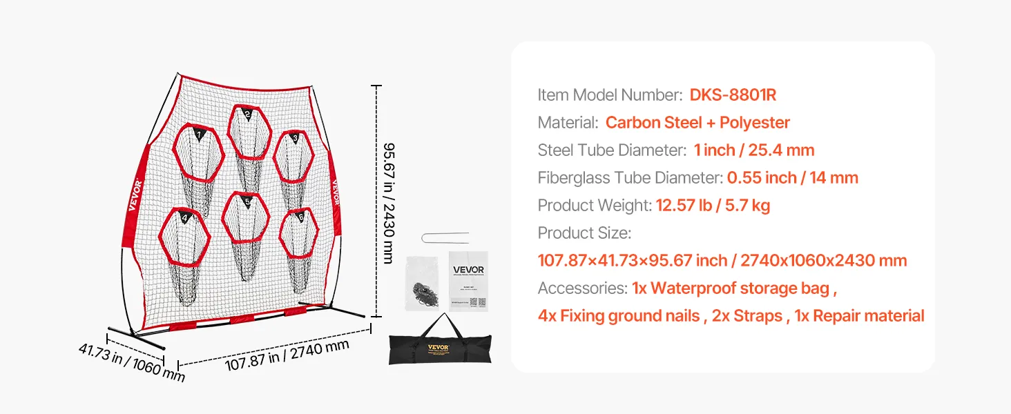 Extra-Large Receiving Area: The training throwing target practice comes with a super-sized throwing net measuring 8x8 feet and features five target pockets, ensuring you can throw the ball from various directions and distances. Whether it's practice or a game, this extra-large receiving area will help you catch the ball easily, improving your chances of success.