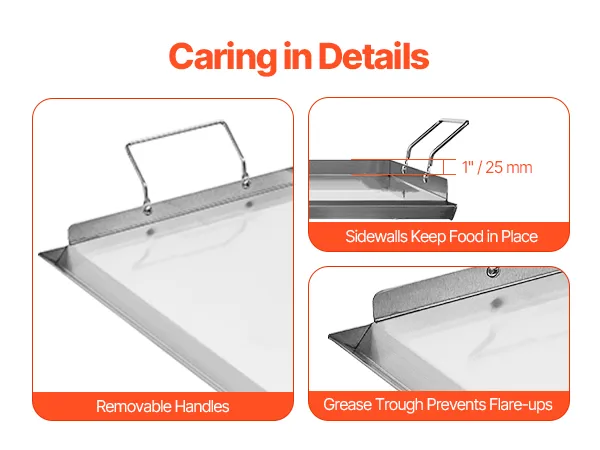 Thoughtful Details: The grease trough and drip hole allow excess oils to drain away, keeping the cooking area clean and promoting healthier meals. Additionally, the sidewalls help keep food in place, preventing spills and making cooking safer and more enjoyable