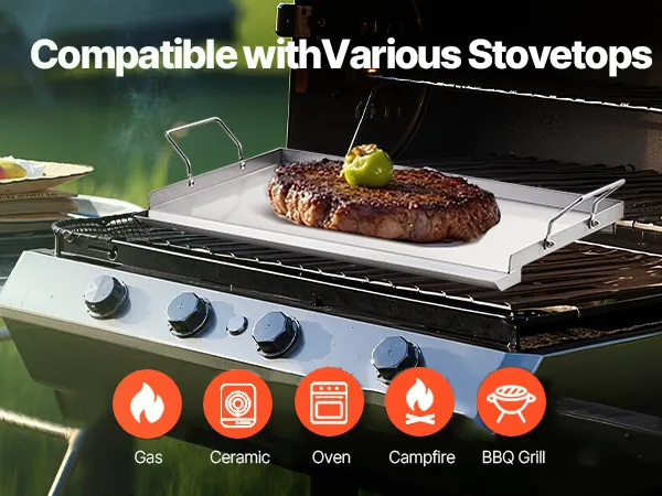 Suitable for Most Stovetops: Whether you have a gas, electric, or induction stovetop, this griddle for gas grill is compatible with all. Its sturdy design ensures consistent heat distribution, providing excellent results on most cooking surfaces